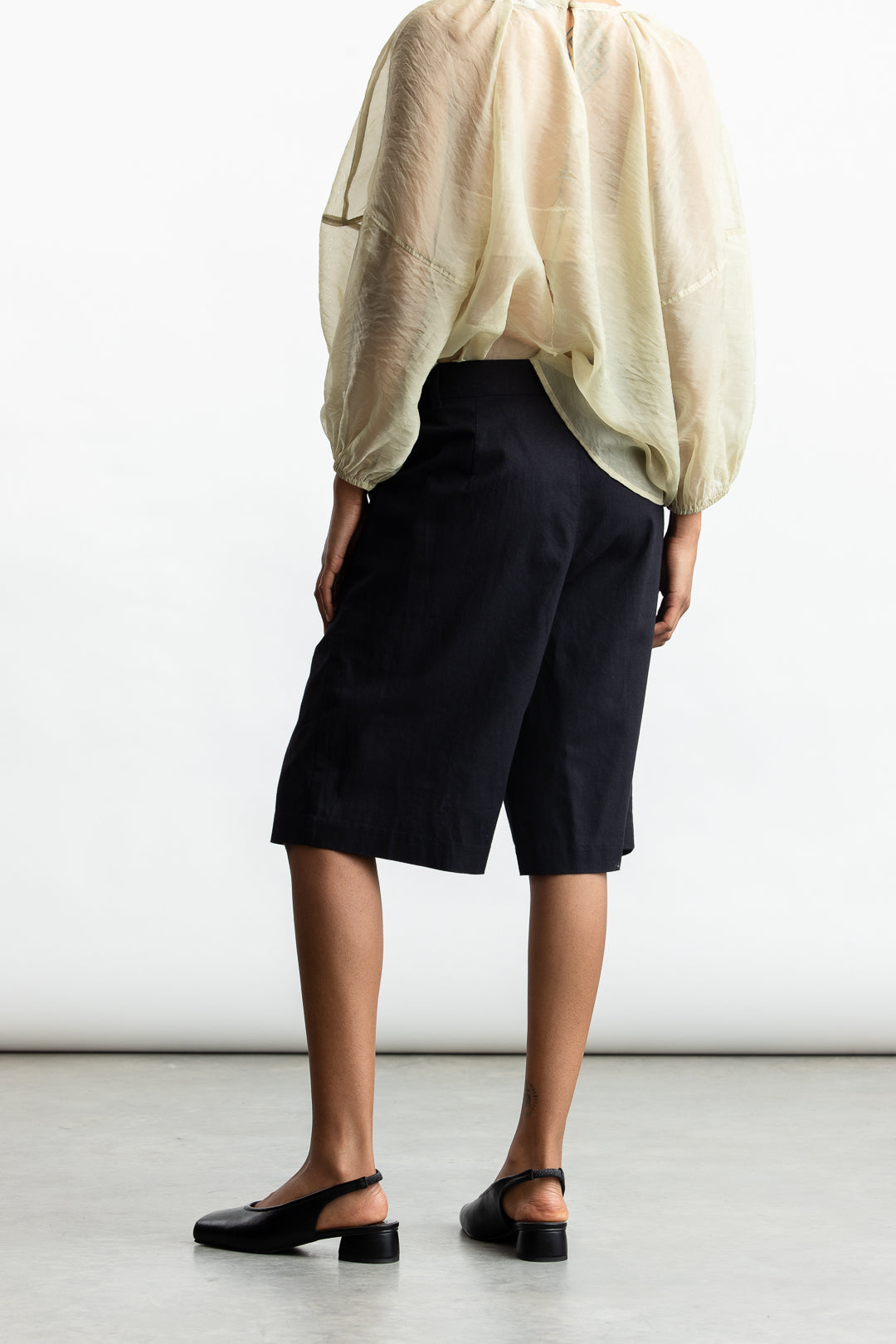 Reimagined with crisp tailoring, our ‘Lebohang’ bermuda shorts exude understated sophistication. Cut with a structured waistband and belt loops, they feature double darts at the front and back for a refined, sculpted fit. Side seam pockets complete the look with clean, functional ease—perfect for elevated everyday styling.