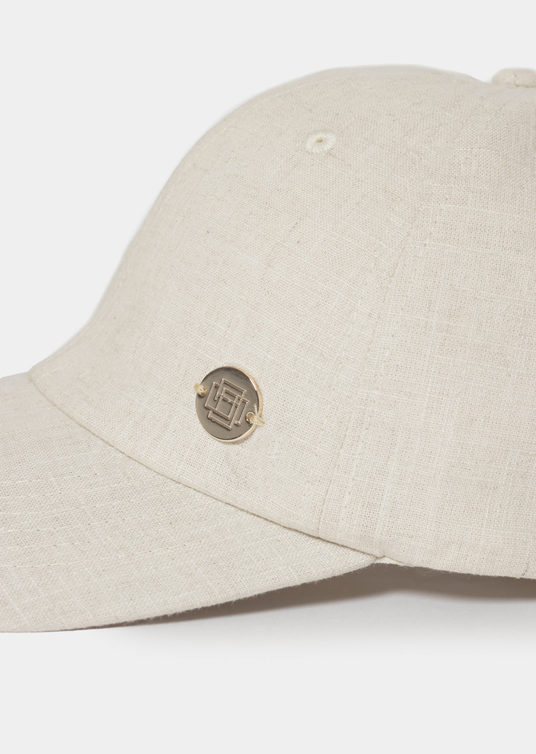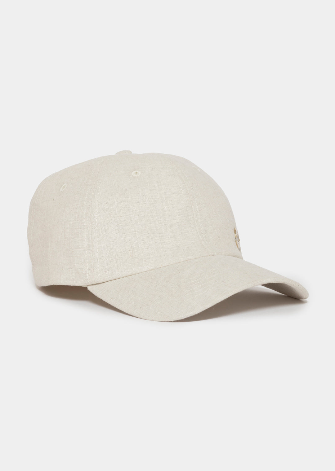 A refined twist on casual headwear, this linen 5-panel peak cap is detailed with a sleek gold ingot at the front for a subtle touch of branding and finished with a gold-toned adjustment trim at the back, ensuring a perfect fit with a hint of shine.