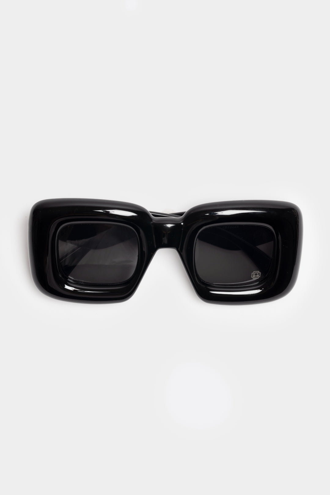 Bold and trendy, these bubble-style sunglasses with a chunky, oversized design for a statement-making look. Featuring sleek black frames and tinted lenses for a modern edge, these high-quality sunglasses are finished with subtle gold branding on the sides, adding a touch of sophistication to this standout accessory.