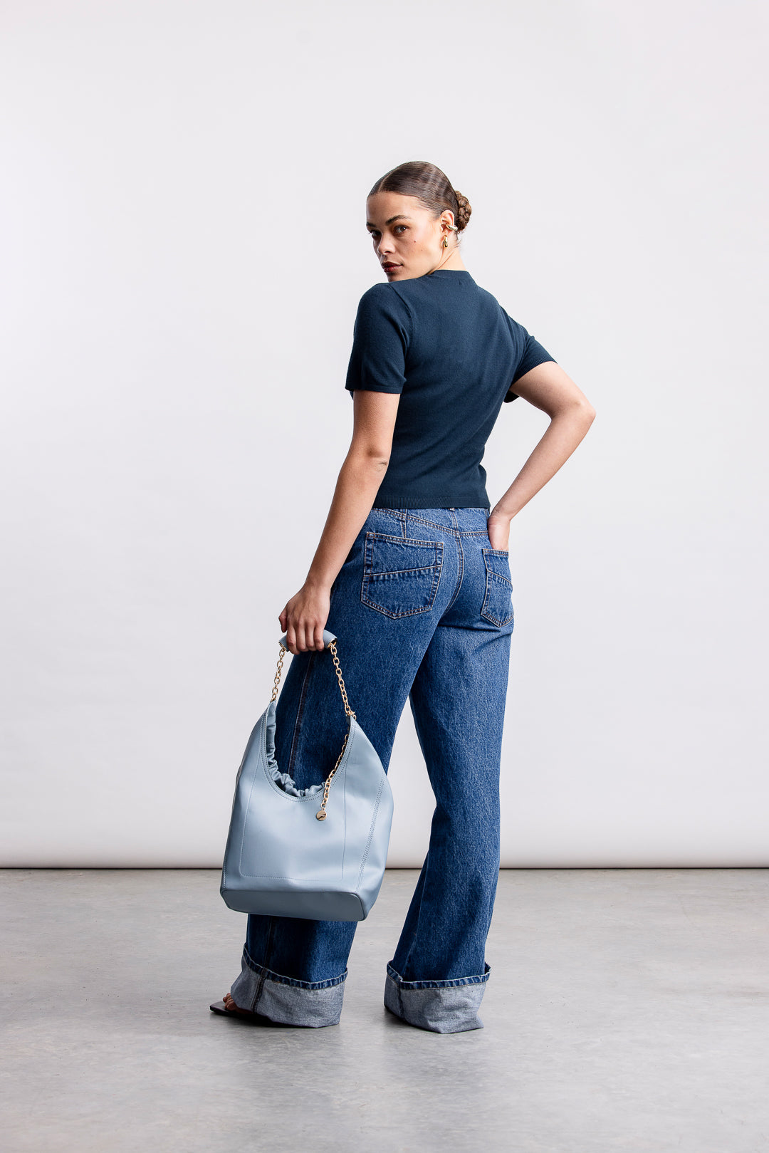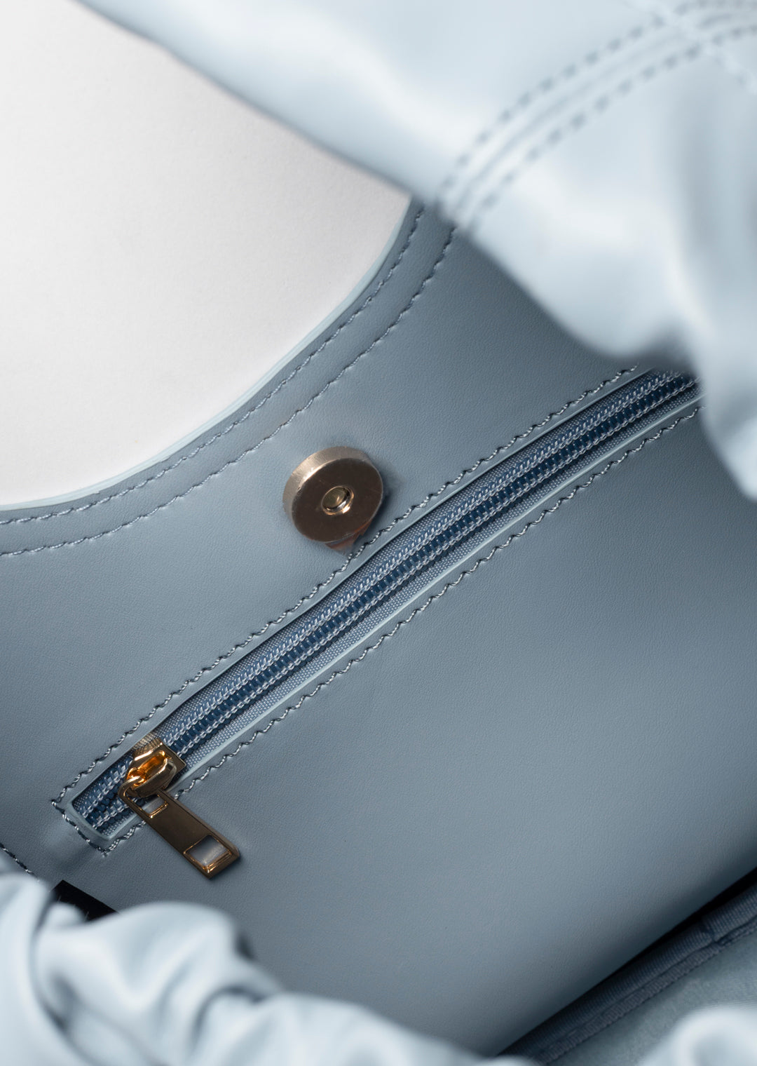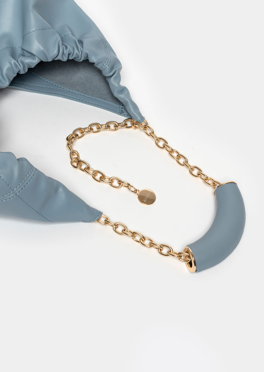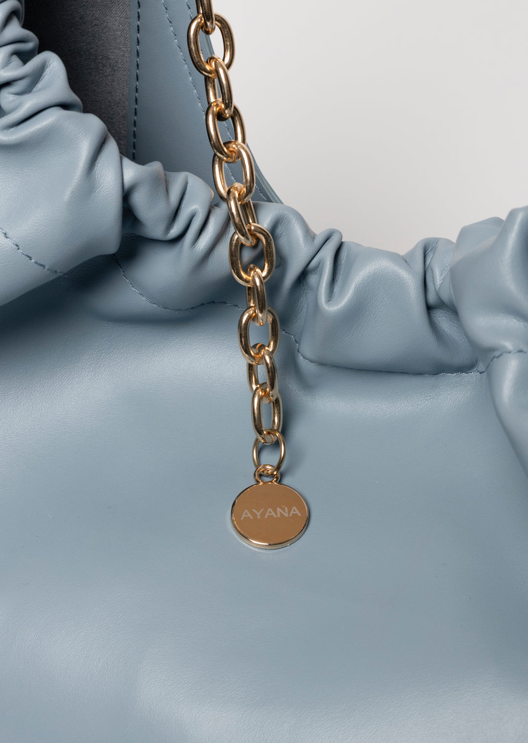 Spacious and striking, our ‘Squeeze me’ bag features elegant ruched detailing and a coin chain accent embossed with the AYANA branding, adding a touch of refined charm. It is complemented by a unique handle combination: a luxurious gold chain strap and a statement round design hard handle. It has subtle gold branding, enhancing its sophisticated appeal, while the secure snap clasp closure ensures your essentials stay protected. Perfect for those who appreciate a blend of modern elegance and practicality.