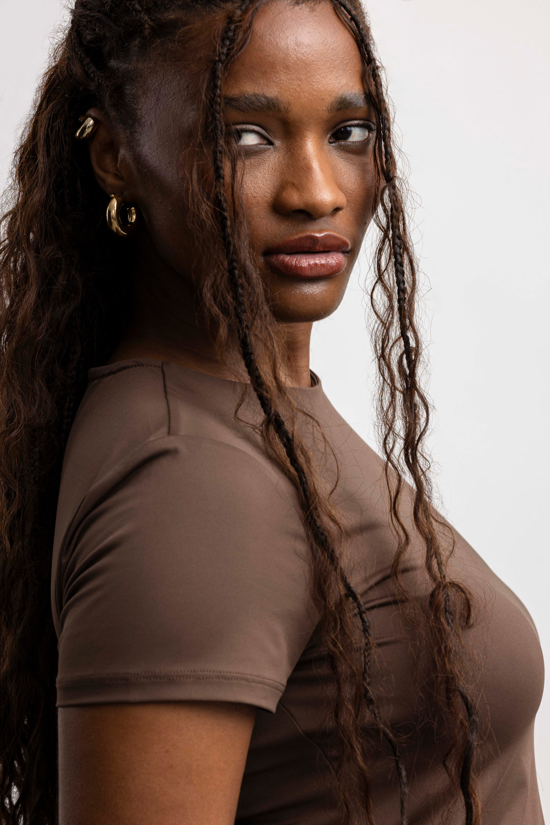 A true wardrobe essential, this fitted short-sleeve top offers endless styling possibilities. Designed with a classic crew neckline and a sleek, body-hugging fit, it creates a streamlined silhouette that layers effortlessly under jackets, shirts, or knitwear. The cropped length adds a modern edge, making it perfect for pairing with high-waisted trousers, skirts, or shorts. Comfortable, versatile, and timeless, this top is the go-to piece you’ll reach for season after season—whether styled casually for everyday wear or dressed up with statement accessories.