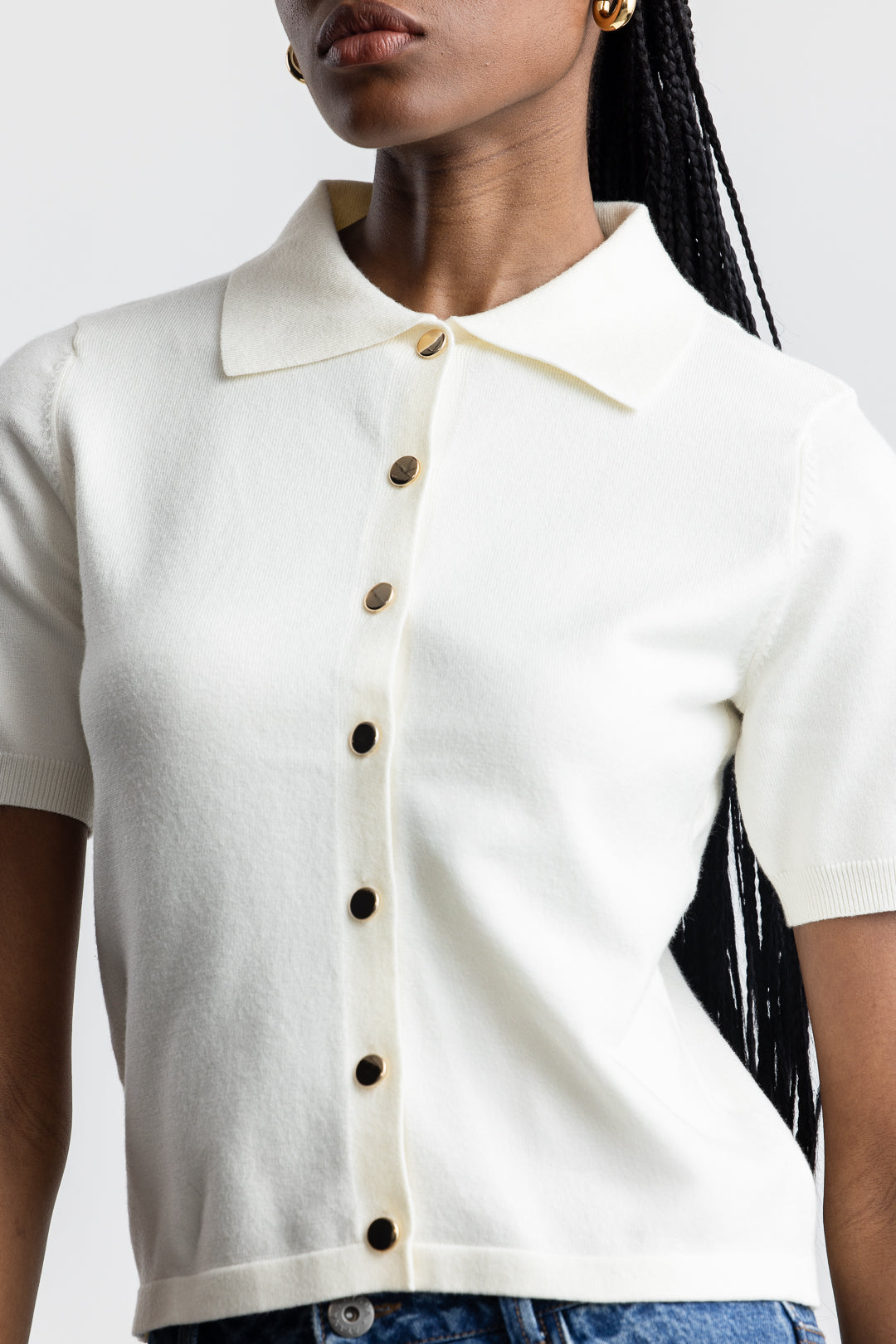 The open revere collar and short sleeves add a laid-back polish, while the softly draped silhouette makes it ideal for warm weather wear. Finished with beautiful gold metal shank buttons, it’s the piece you’ll reach for to elevate casual looks with ease.