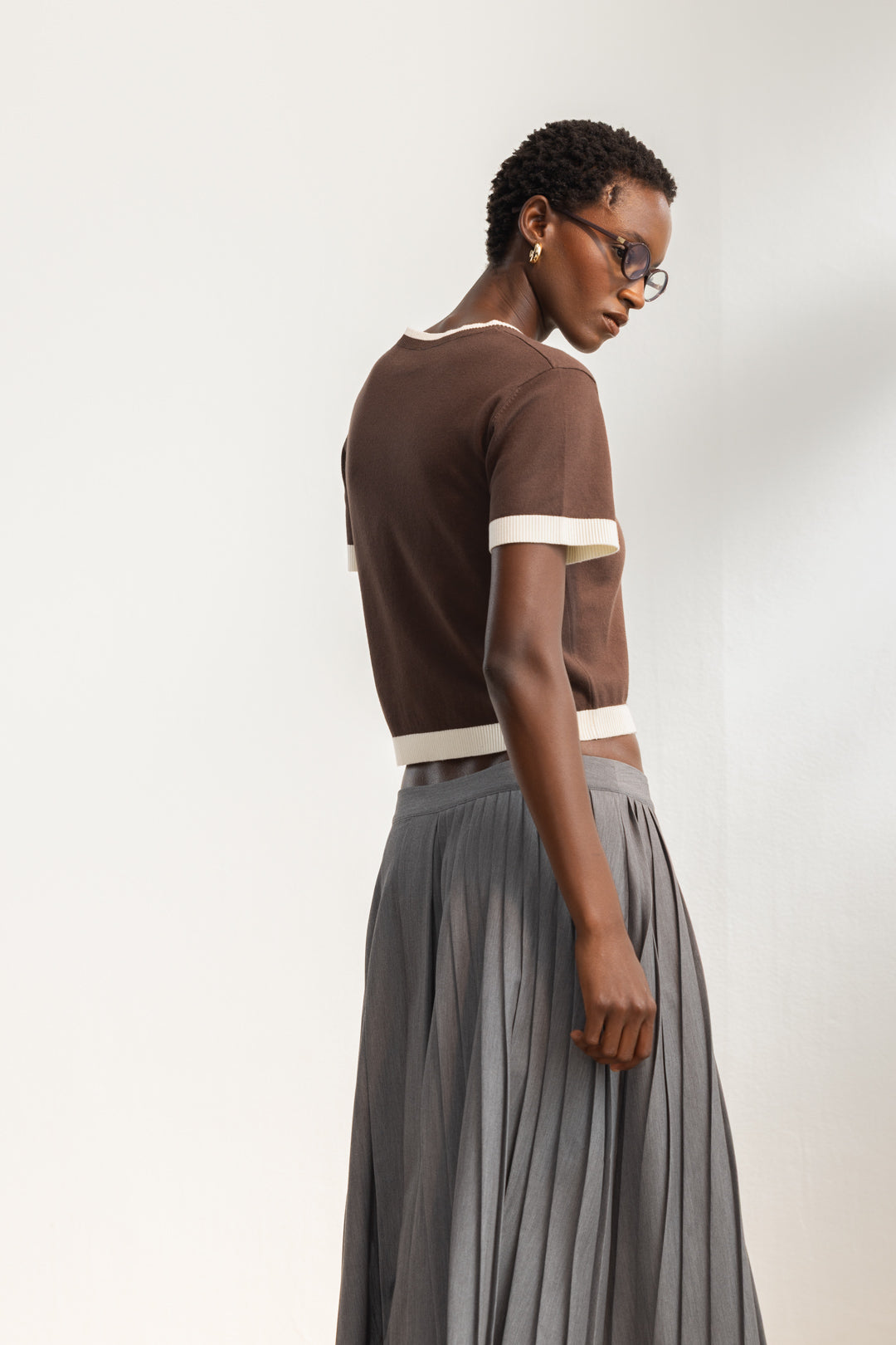 Playful proportions meet elevated restraint — Our Luma Knit Tee reimagines classic knitwear through a modern, fashion-led lens. Inspired by understated charm and youthful polish, this short-sleeve knit balances softness with structure for a look that feels both effortless and intentional.