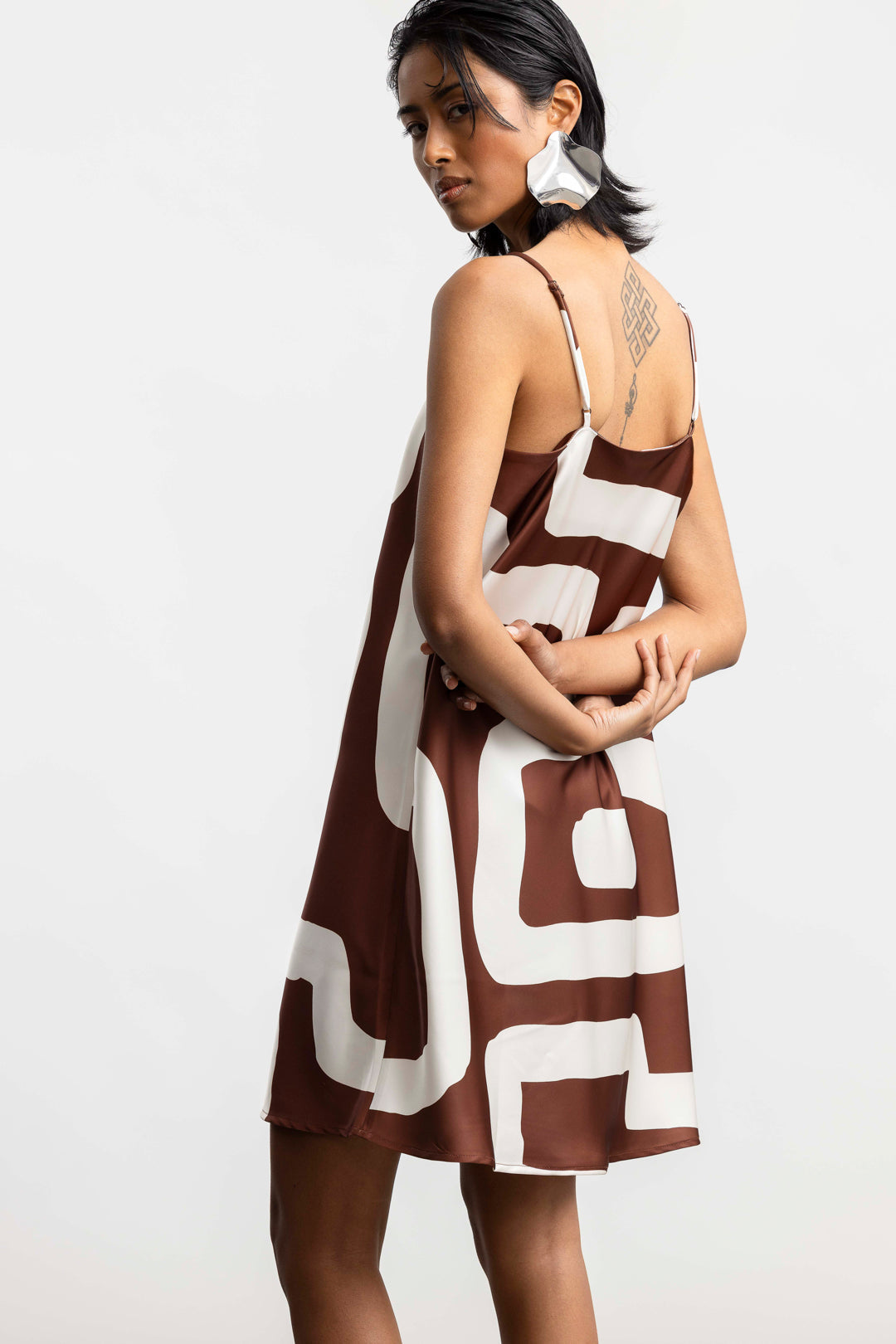 This slip dress embodies timeless minimalism with its clean lines and effortless silhouette. Featuring a softly squared neckline and delicate spaghetti straps, it drapes fluidly over the body in a relaxed A-line shape. The lightweight fabric moves beautifully, making it an easy choice for both casual and dressed-up occasions. Style it simply with heels and a clutch for evening elegance, or layer with a blazer and flats for a refined daytime look.