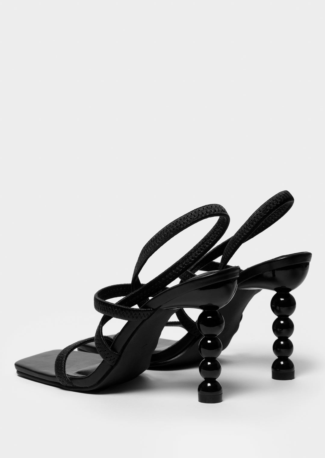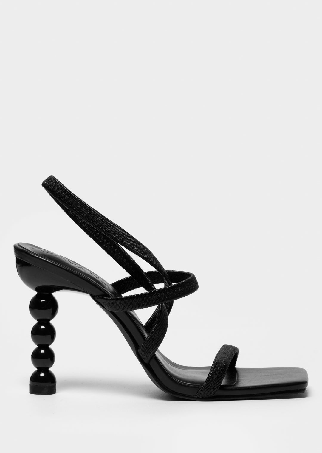 Step into modern elegance with ‘Mmathabo’, our strappy heeled sandal. She is designed with a sleek square toe silhouette featuring elasticated straps that ensure a flexible, secure fit for any foot shape. A chic slingback strap adds both style and support, while the standout heel steals the show with its sculptural, stacked round design reminiscent of playful bubble shapes. Perfect for adding a contemporary edge to any outfit.