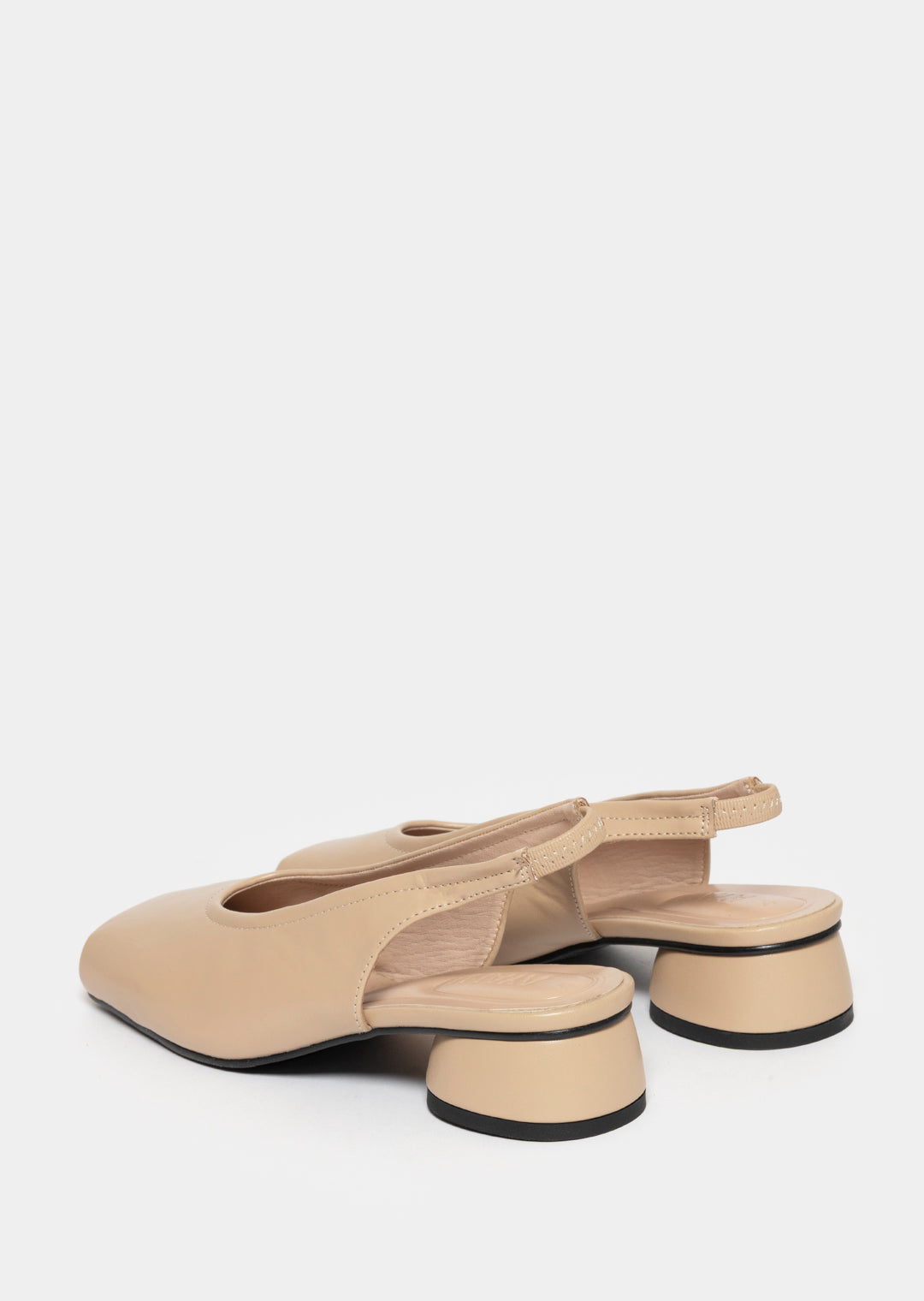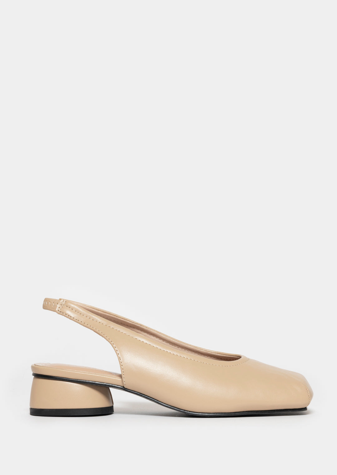 Redefining classic femininity, this smart shoe is designed with an elasticated slingback and a sculptural square-toe silhouette, it's grounded by a rounded mini block heel for subtle elevation. The perfect balance of softness and structure, with a contemporary twist on timeless elegance.