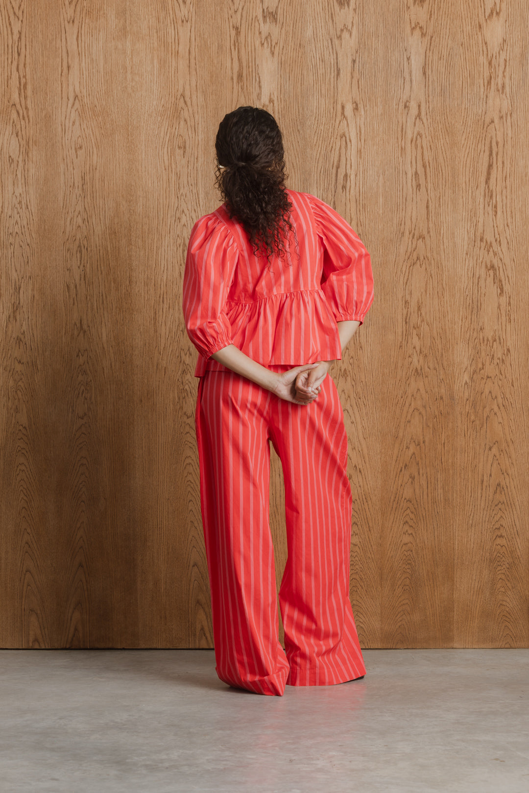 Relaxed yet refined, this trouser blends bold lines with fluid tailoring. Cut in a lightweight cotton with a wide-leg silhouette and drawstring waist, it offers effortless movement and everyday ease.