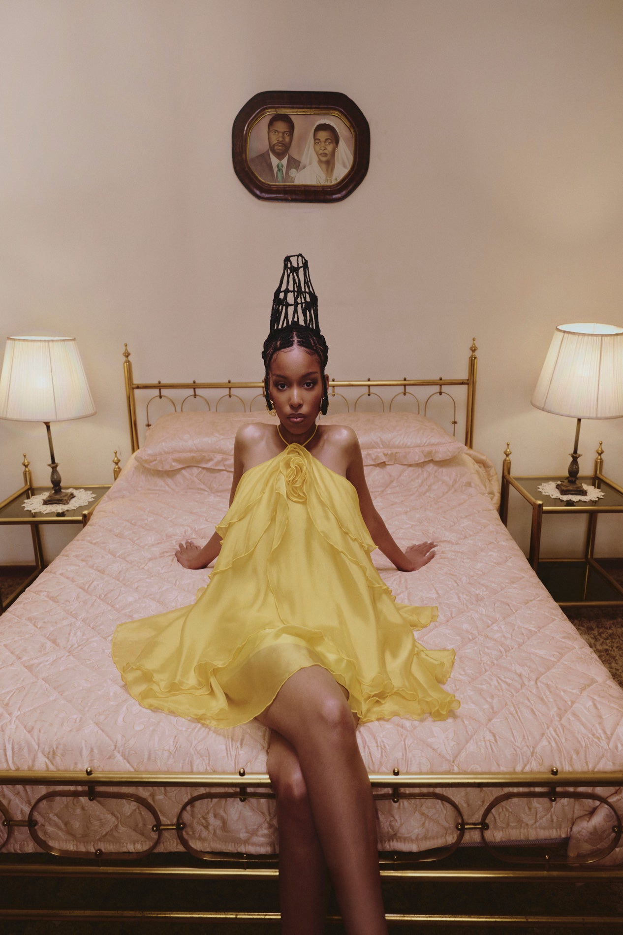 A breezy mini dress, the ‘Anastacia’ halter-neck neckline gathers into a delicate rose-inspired detail at the centre, flowing into soft ruffled tiers that create movement with every step. Lightweight and breathable, it features adjustable straps for a customizable fit and a playful, floaty silhouette that skims mid-thigh.