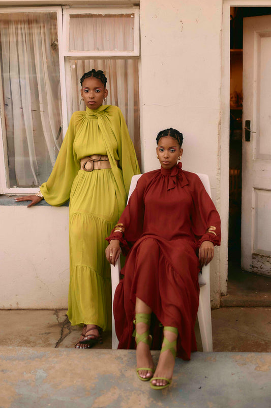 The collection mirrors the grace of the women who raised us by featuring refined dresses, flowing skirts, and coord sets crafted for sophistication. Sharp tops and silhouettes adorned in rich heritage and vibrant colours speak to a legacy of elevated style. The story is completed by powerful accessories including statement jewellery and structured handbags that act as armour for the modern woman. This is your invitation to discover your resolve and define your elegance through the way we show up for one another. This is the definitive collection for sophisticated women's clothing and contemporary South African fashion.