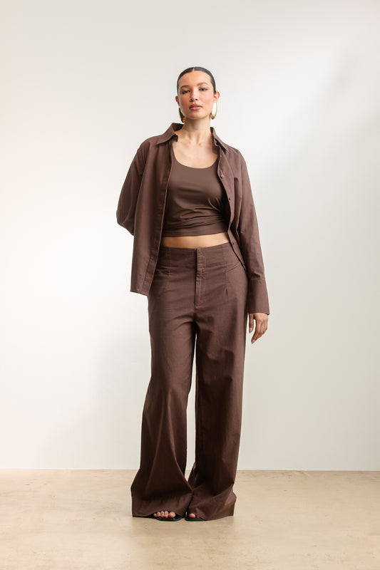 A collection defined by the power of natural ease. The Linen Chapter tells a deeper story of timeless form, celebrated in breathable cotton-linen blends and soft, tactile natural fabrics that connect to a conscious philosophy. Explore soft, fluid dresses that move with intent, airy shirts that redefine the essential, and perfectly cut pants that offer a new freedom. Rendered in a considered palette of sun-bleached neutrals and rich, earthy pigments, this is the essential framework for a versatile, long-lasting, and modern, conscious silhouette.