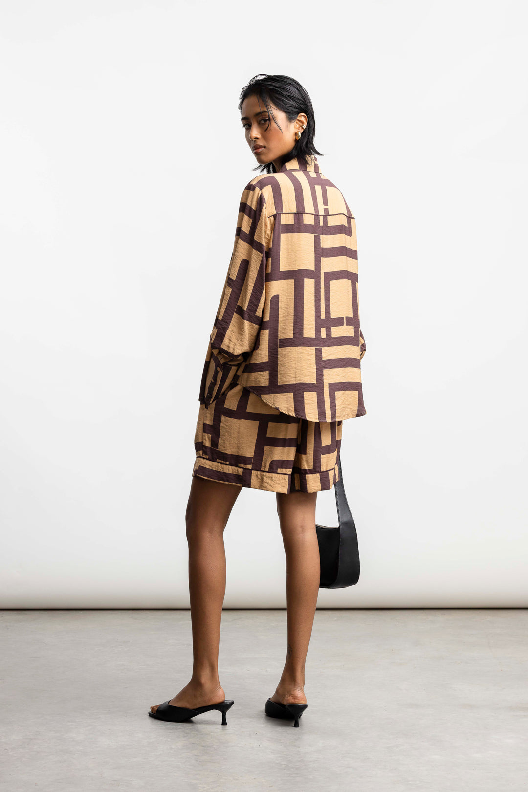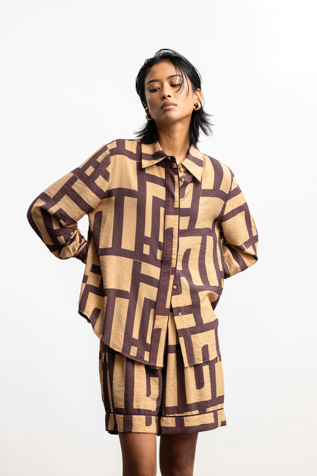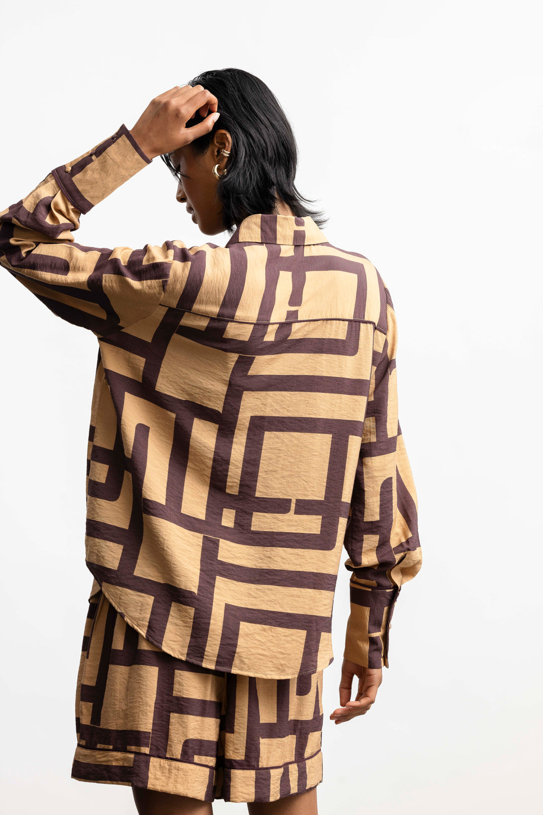 Elevated and refined, this viscose-nylon blend shirt brings a polished touch to everyday dressing. Cut in a fluid, lightweight blend, it drapes beautifully on the body for a clean, tailored look. Piping detail along the seams adds a subtle contrast, while a concealed button stand keeps the front sleek and minimal. Finished with covered buttons at the cuff & collar for a thoughtful, elevated finish. Whether styled tucked in or worn loose, it’s a versatile piece that transitions effortlessly from work to weekend