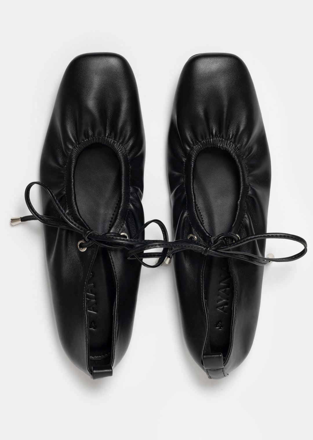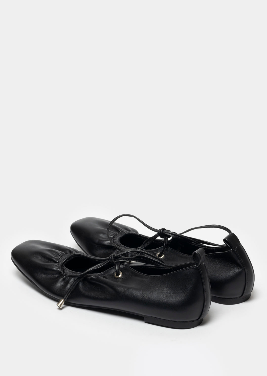 Our lace-up ballet pumps are both stylish and elegant. These flats feature a delicate tied bow detail on the upper and a very low heel, blending sophistication with comfort. Perfect for adding a touch of grace and elegance to both casual and dressy outfits.