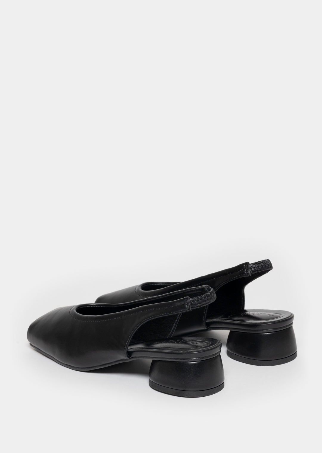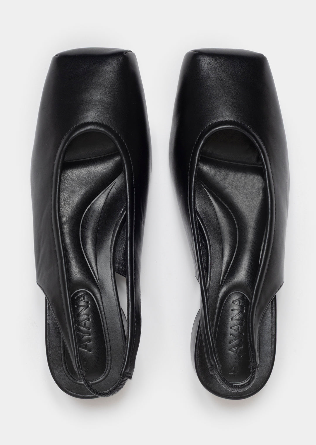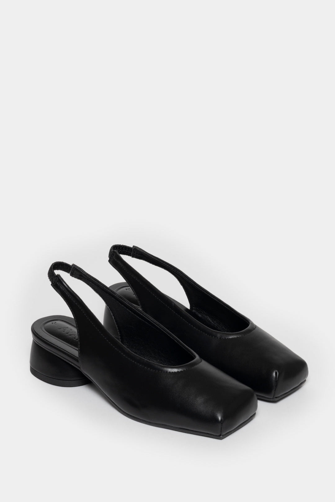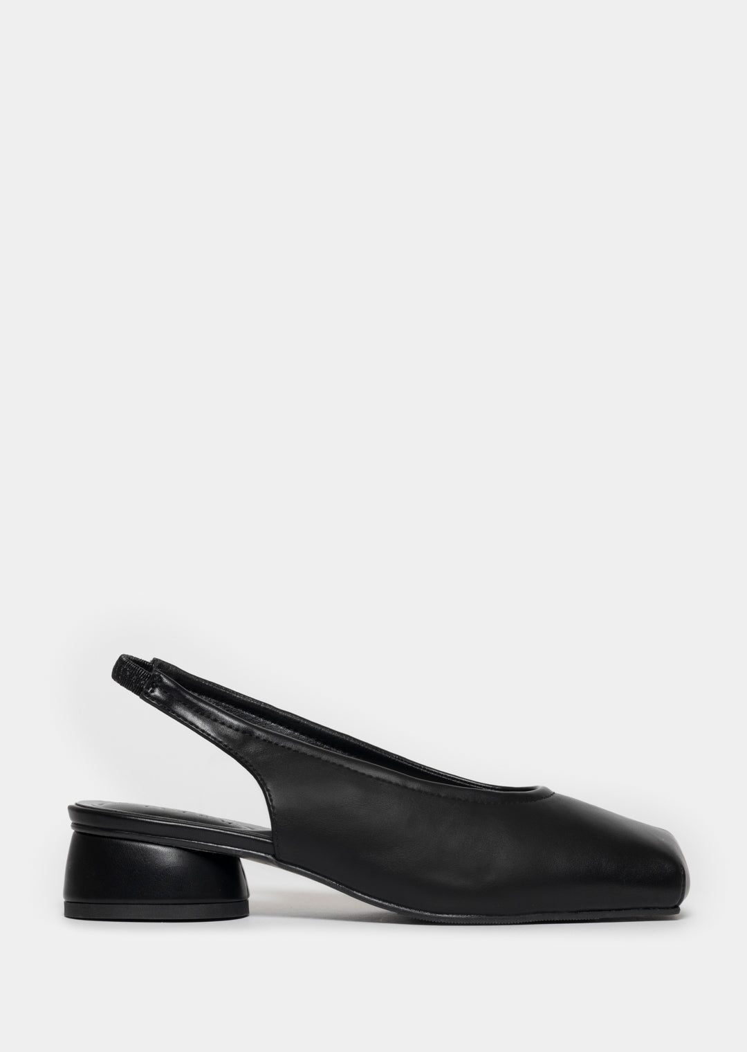 Redefining classic femininity, this smart shoe is designed with an elasticated slingback and a sculptural square-toe silhouette, it's grounded by a rounded mini block heel for subtle elevation. The perfect balance of softness and structure, with a contemporary twist on timeless elegance.
