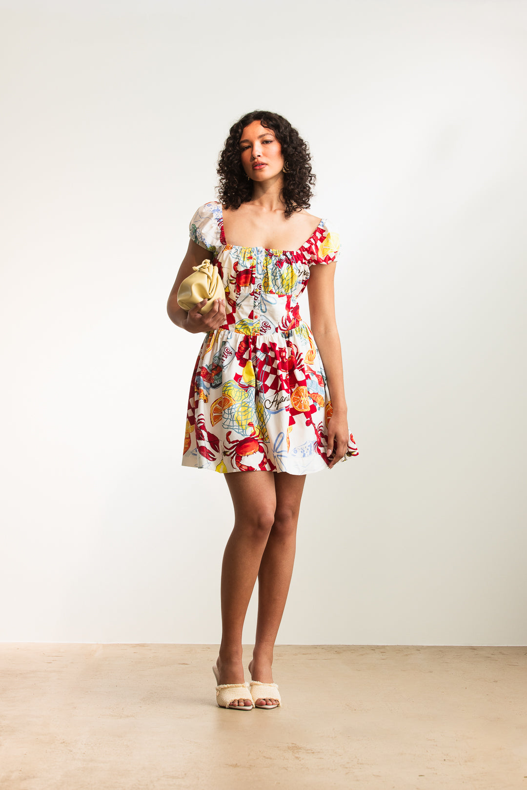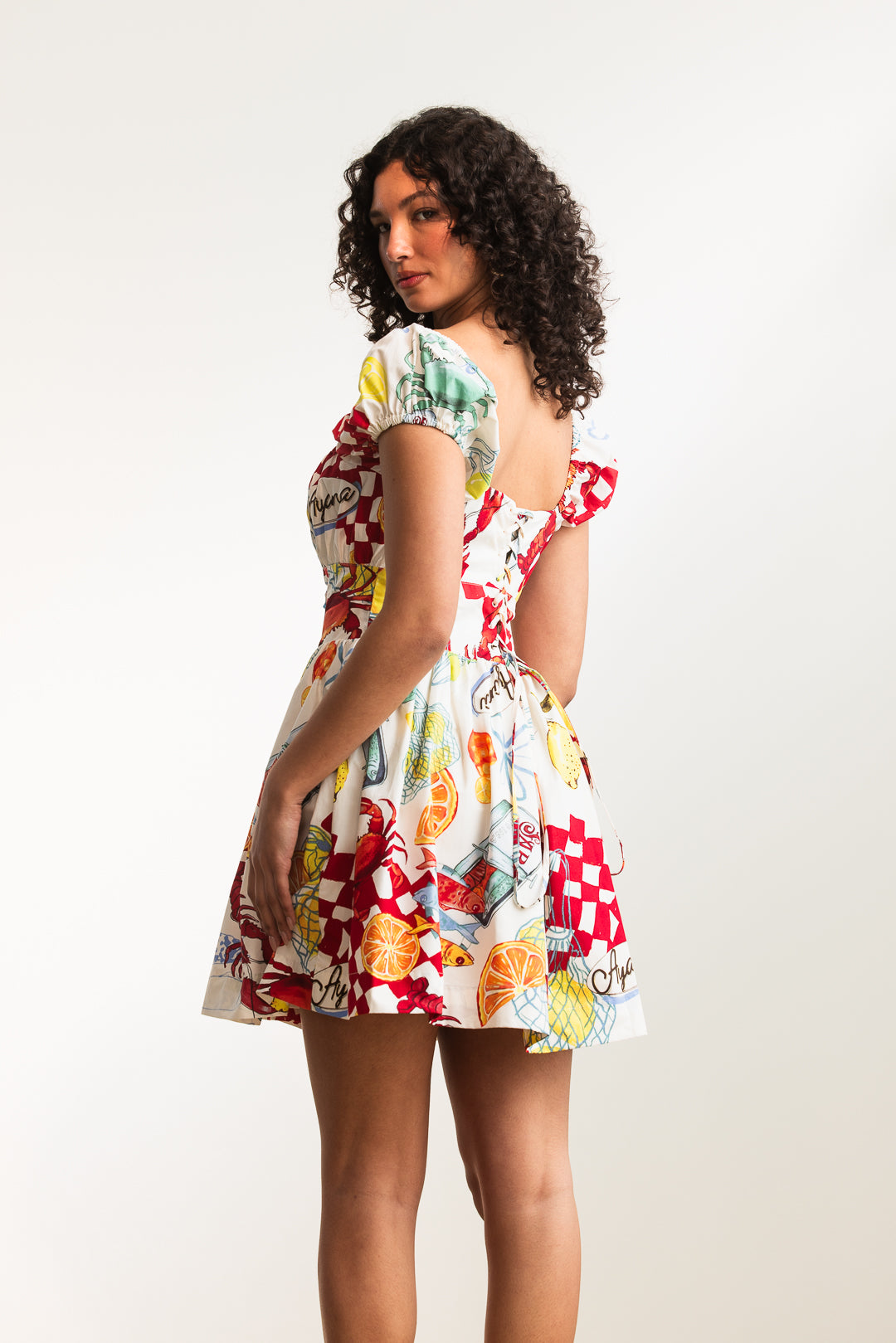 Romantic and feminine, this dress is designed to flatter while offering a touch of vintage-inspired charm. The square neckline frames the décolletage beautifully, complemented by softly ruched puff sleeves that add volume and elegance. A fitted bodice with button-down detail creates structure at the front, while the lace-up corset design at the back provides both adjustability and a delicate, eye-catching finish. The skirt flows gently into a flattering A-line silhouette, making it versatile for both daytime and evening occasions. Pair it with sandals for a sweet casual look or elevate it with heels and accessories for a dressed-up ensemble