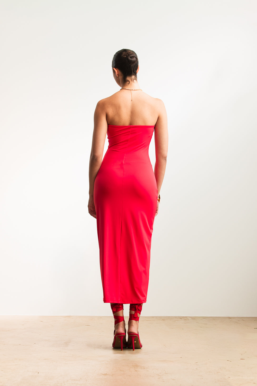 Sleek and sophisticated, this boobtube dress is crafted from polyamide for a smooth, body-contouring fit. The strapless neckline highlights the shoulders and décolletage, while the streamlined silhouette creates an elegant, elongated shape. Falling to a chic midi length, it balances comfort and allure, making it perfect for evening occasions, cocktail parties, or special events. Style it with statement earrings and strappy heels for a modern, refined look.