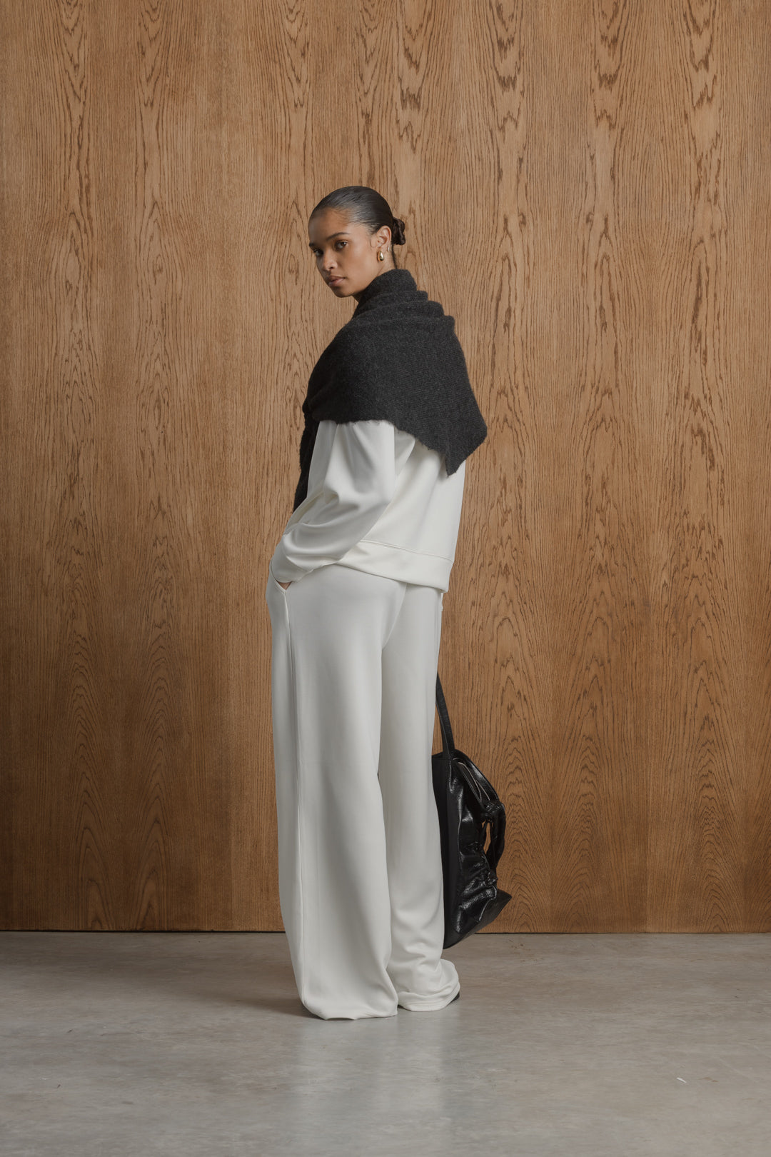 Osanga offers a gentle touch against the skin, these luxurious, comfortable and ultra-soft wide-leg joggers are crafted from durable modal fabric. The wide-leg silhouette ensures freedom of movement and a laid-back style. They feature side pockets for convenience and a waistline that can be easily adjusted with drawstrings, adding a personalized fit. The silver metallic aglets at the end of the drawstrings add a sleek, refined touch, while the subtle ingot branding enhances the design, making these joggers a perfect combination of style, comfort, and durability.
