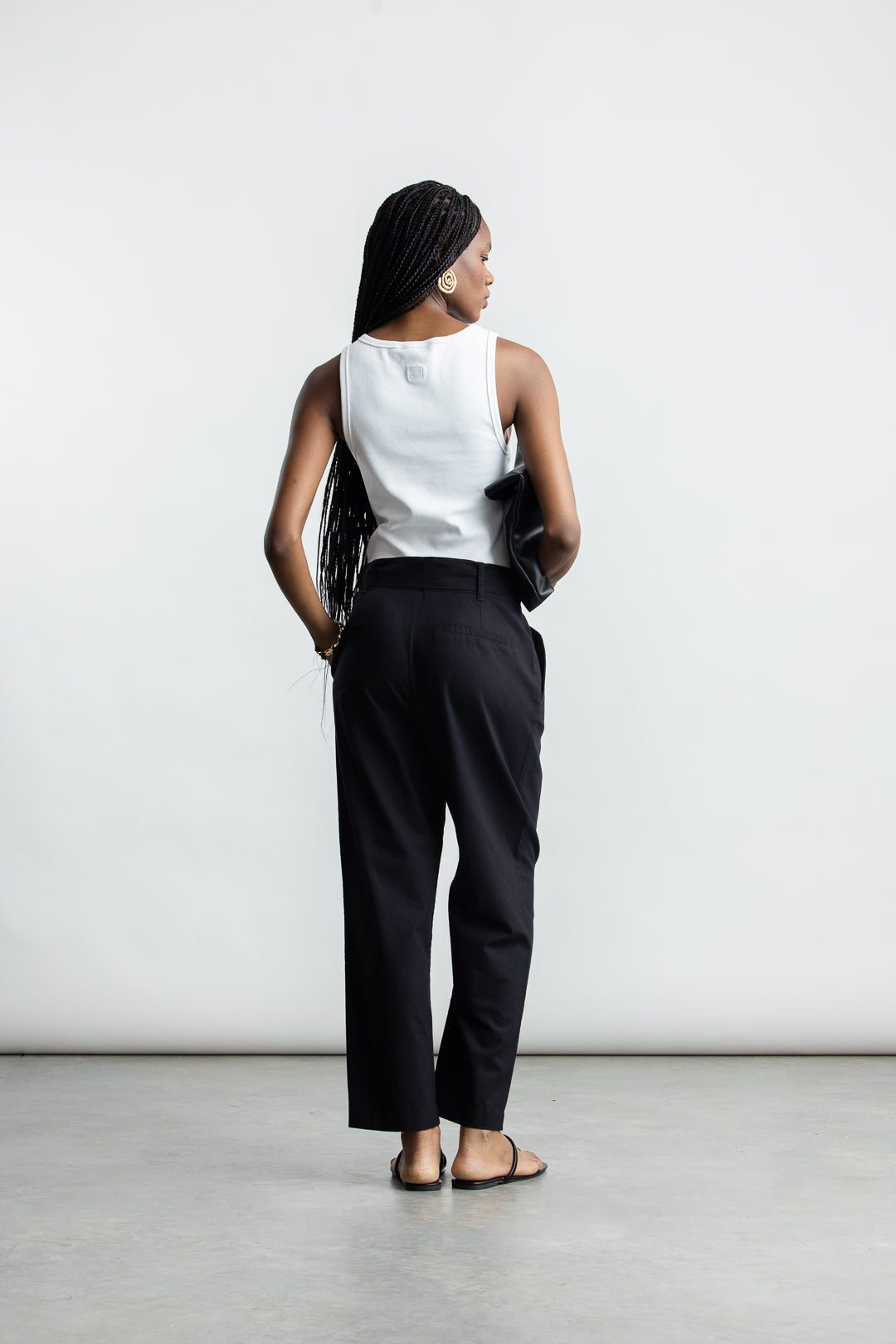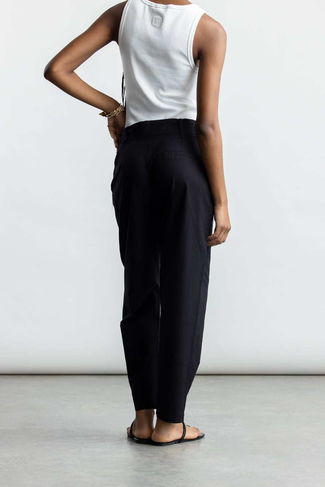 Our ‘Sienna’ classic tapered leg pants exude timeless elegance and impeccable tailoring. The self-fabricated wide belt, buckle and belt loops add a structured and polished finish to the design. Featuring practical side pockets and a sleek mock welt pocket at the back, these pants offer both style and functionality. The front pleats provide a tailored fit, creating a sharp, flattering silhouette, while the back darts ensure a clean, contoured look. Perfect for any occasion.