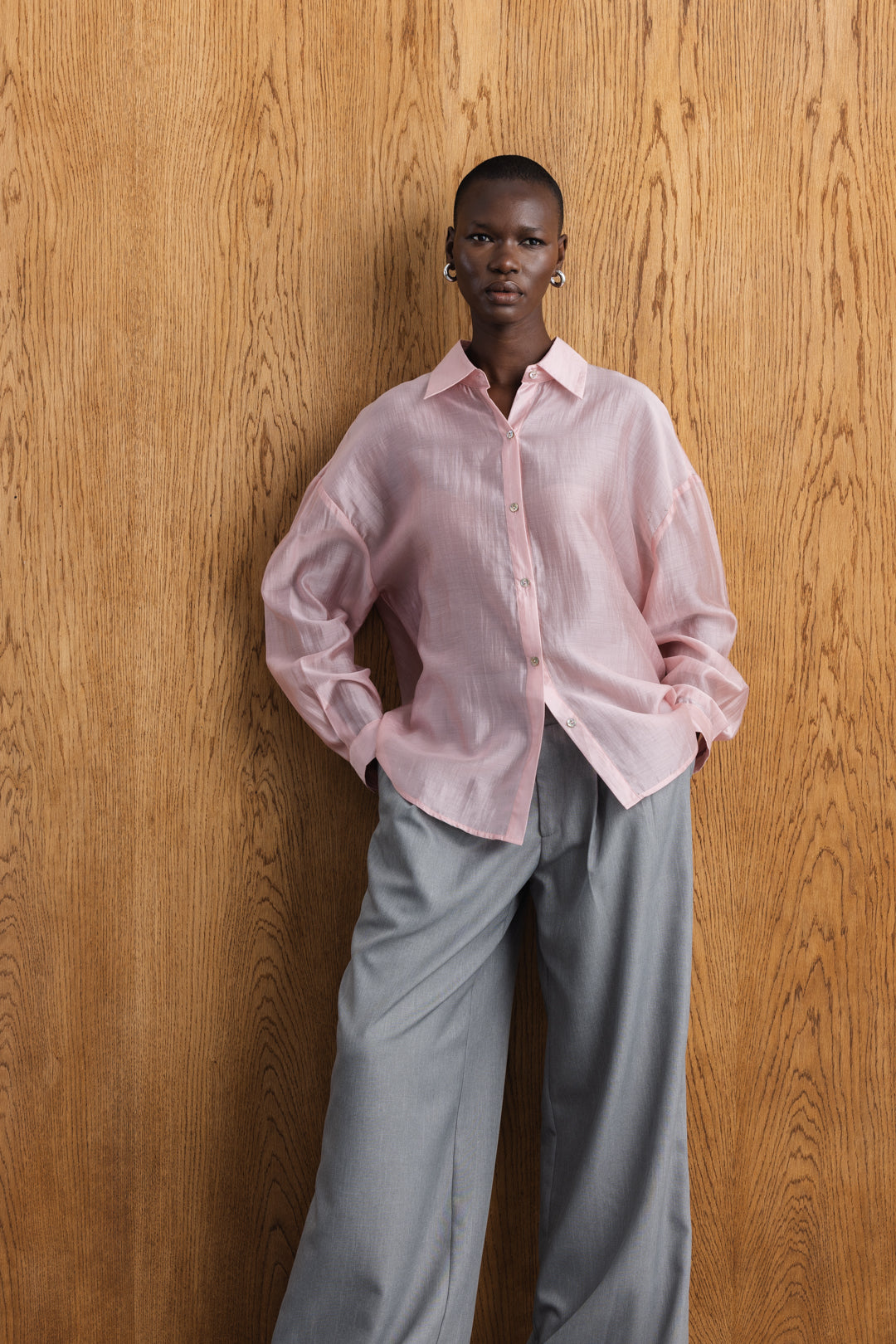 Add a contemporary twist to your wardrobe with this effortlessly chic shirt, crafted from a lightweight semi-sheer fabrication that drapes beautifully on the body. The classic front features a crisp collar, button-down placket, and relaxed silhouette, offering timeless appeal with modern ease. At the back, a striking criss-cross panel detail creates a layered, overlapping effect. The shirt is finished with tailored cuffs and subtle gathers at the sleeve for a refined touch. Perfect for dressing up or down, this elevated staple brings unexpected flair to everyday shirting.
